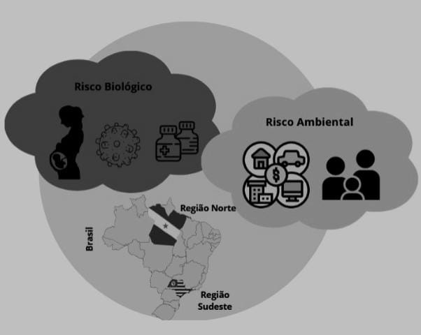 Figura 1. Descrição da influência de fatores de risco biológicos e ambientais em duas regiões do Brasil (regiões Norte e Sudeste)