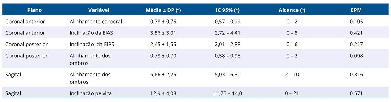 Tabela 2. Estatísticas descritivas de variáveis posturais (n = 100)