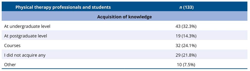 Regarding obtaining greater access to information on exercise periodization in rehabilitation, 32.3% of participants reported that it was “during undergraduate studies”, while 21.8% reported that they did not obtain this knowledge (Table 2).